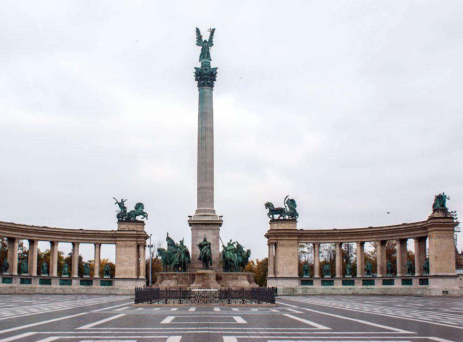 Η Πλατεία Ηρώων (Hősök tere) έγινε προς τιμή και μνήμη των μεγάλων ηρώων της Ουγγρικής ιστορίας. Βρίσκεται στο τέλος της λεωφόρου Andrassy και είναι ένα απ’ τα πιο δημοφιλή αξιοθέατα της πόλης. Το μνημείο στο κέντρο της πλατείας ονομάζεται Μνημείο της Χιλιετίας και χτίστηκε για τον εορτασμό της επετείου των χιλίων χρόνων από την κατάκτηση των Μαγυάρων. Το μνημείο περιέχει αγάλματα όλων των διάσημων ανδρών της Ουγγρικής ιστορίας συμπεριλαμβανομένων βασιλιάδων, κυβερνητών και άλλων σεβάσμιων προσώπων ανάμεσα τους και ο βασιλιάς Στέφανος Α΄ που έφερε τον Χριστιανισμό στη χώρα.