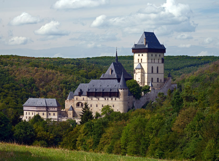 Το απόρθητο κάστρο Κάρλστεϊν βρίσκεται 40 χμ νοτιοδυτικά της Πράγας, σε μια δασώδη περιοχή, 2 χμ πάνω από την κοιλάδα του ποταμού Berounka. Το κάστρο του Karlstejn χτίστηκε το 14ο αιώνα από τον αυτοκράτορα Κάρολο τον Δ. Ήταν η εξοχική κατοικία του βασιλιά αλλά κυρίως χρησιμοποιούταν ως ασφαλές μέρος για συλλογισμό και ως θησαυροφυλάκιο για τα κοσμήματα του αυτοκρατορικού στέμματος και τα ιερολείψανα Αγίων. το εσωτερικό του φυλάσσονται σχεδόν εκατόν τριάντα πίνακες ζωγραφικής. Ο τελευταίος όροφος του κεντρικού πύργου φιλοξενεί το παρεκκλήσι του ιερού Σταυρού με επιχρυσωμένους τοίχους και με πολύτιμους λίθους.