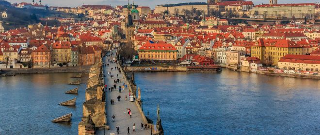 Μαγική και κουκλίστικη, σαν υπαίθριο θεατρικό σκηνικό, η «βελούδινη» πρωτεύουσα της Τσεχίας δίκαια είναι ένας από τους πιο δημοφιλείς προορισμούς της κεντρικής Ευρώπης. Ταξιδέψτε στην Πράγα του Κάφκα και των αλχημιστών του χρυσού, στην μποέμ παραμυθούπολη στις όχθες του Μολδάβα. Ζήστε διαφορετικές εποχές σε κάθε σας βήμα στην πόλη που υμνεί την αρχιτεκτονική. Περιδιαβείτε ανάμεσα σε εμβληματικά κτίρια όπως ο γοτθικός ναός του Αγίου Βίτου στο Κάστρο, το αναγεννησιακό παλάτι Μπελβεντέρε στον Βασιλικό Κήπο, ως τον κυβιστικό οίκο της Μαύρης Μαντόνας, τα αρ νουβό στολίδια της λεωφόρου Pařížská και το αβάν γκαρντ κτίριο που χορεύει στη Νοve Mesto. Ανακαλύψτε τα μικρά μυστικά της τσέχικης πρωτεύουσας σε κάθε γωνιά, υπέροχες μπουτίκ κρυστάλλων Βοημίας, «ναούς» της τοπικής γαστρονομίας σε παλιά υπόγεια κελάρια, ατμοσφαιρικά στέκια όπου ο καφές είναι απόλαυση και ιεροτελεστία. Πάρτε το καραβάκι για μια ρομαντική βόλτα στον Μολδάβα, κάτω από τις γέφυρες που στεφανώνουν το ποτάμι με τα ήρεμα νερά στην καρδιά της Πράγας.